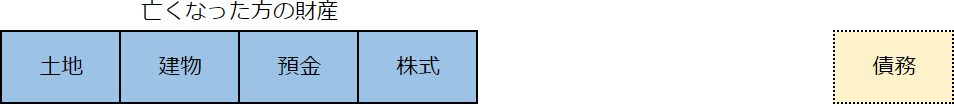 ①亡くなった方の財産を把握します。なお、マイナスの財産である借入金等の債務もあれば把握します。