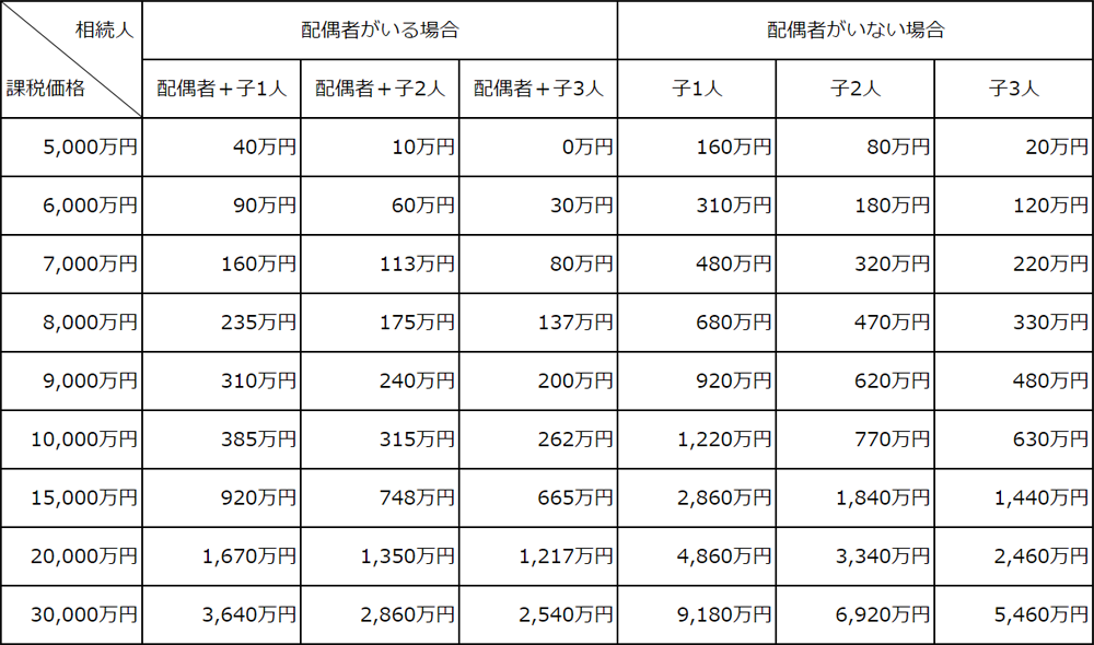 配偶者が実際に取得をした正味の遺産額が1億6,000万円までか、配偶者の法定相続分相当額までであれ ば、配偶者に相続税はかかりません。